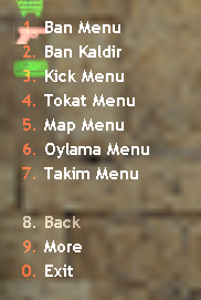 eklenti sitede mevcut zaten admin menu şeklinde ararsan görüceksin ayrıca kendin yapmak istiyorsan da menufront.sma dosyasını bul editle. amxmodmenu ' yü kendine göre editlemiş olursun menufrontu editlersen. yada direk hazır kullan sitede var adminmenü.
